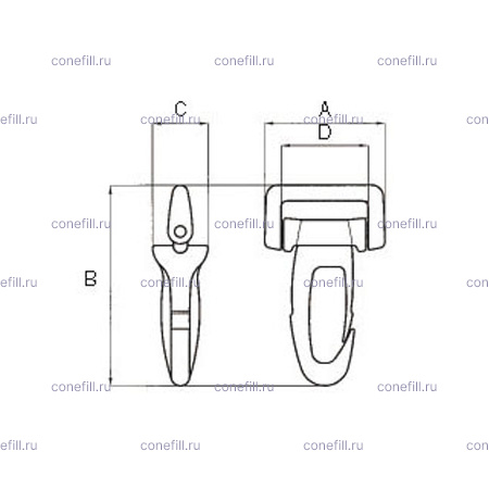 Поворотный карабин с ответной частью щелями для стропы.